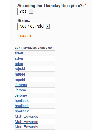 - If not, turn on the other signup-related add-ons (signup_status, etc, etc) 1 by one, and see if/when you start seeing the problem. That'll help narrow down the source of the bug.